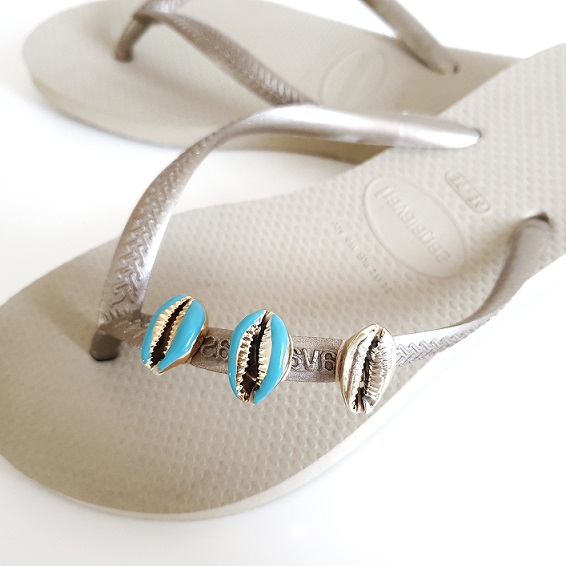 כפכפים מעוצבים- צדפים זהב וטורקיז